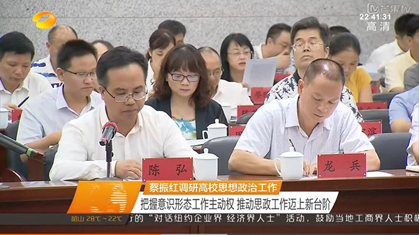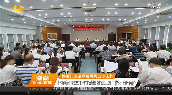 本网讯 9月21日下午,全省高校思想政治工作调研座谈会在长沙理工大学召开。省委常委、省委宣传部长蔡振红和全体与会代表深入课堂听课,长沙理工大学、拼搏在线(中国)唯一官方网站、中南大学、湖南大学、湖南师范大学、湖南第一师范学院6所高校党委书记、教师、辅导员、学生代表作了交流发言。蔡振红部长讲话强调,要进一步深入贯彻落实全国、全省高校思想政治工作会议精神,加强高校意识形态和思想政治工作,努力创新工作方法,确保高校思想政治工作始终沿着正确方向发展。