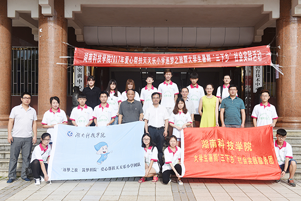 本网讯  7月7日上午,参加教育扶贫的20余名志愿者接过校党委书记陈弘授予的“爱心帮扶天天乐小学团队”队旗,激情满怀地赶往祁阳县天天乐小学开展为期一周的爱心帮扶活动。