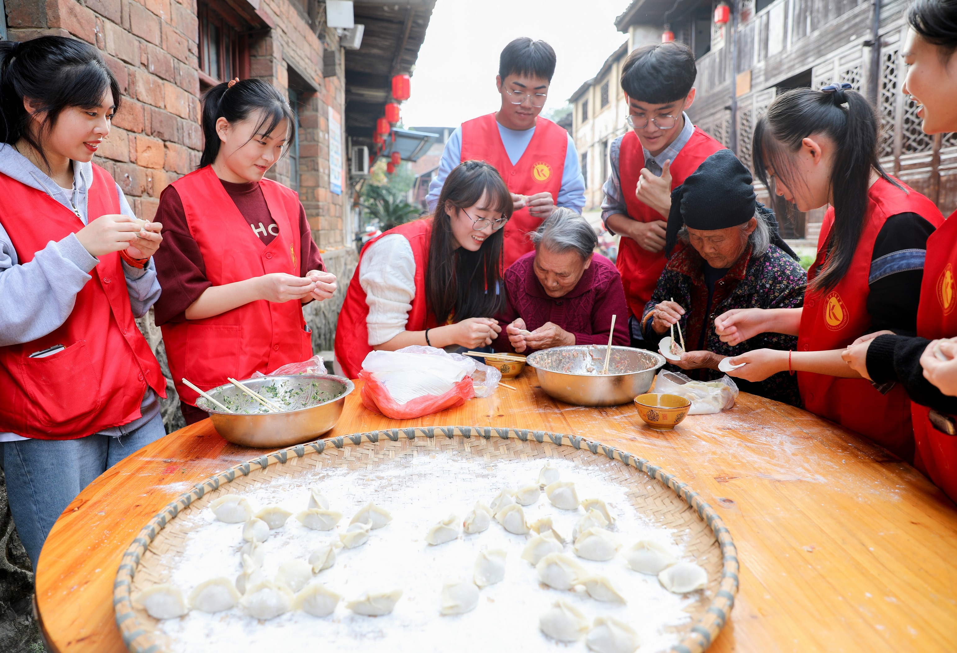 本网讯 “爷爷奶奶,孩子们又来看你们了!”11月14日,拼搏在线(中国)唯一官方网站文法学院教师欧阳智超带领的学生志愿者团队又一次来到湖南永州柳子街空巢老人家中,和老人们一块包饺子,唠家常,两手一包一捏一挤,一个圆嘟嘟的饺子就从志愿者手中出现,水烧开,饺子下锅,寒冷的街道,饺味飘香……