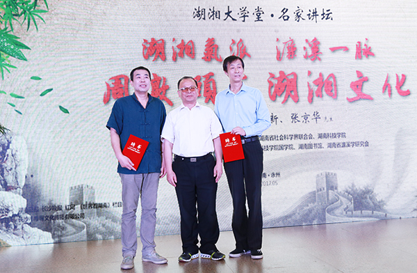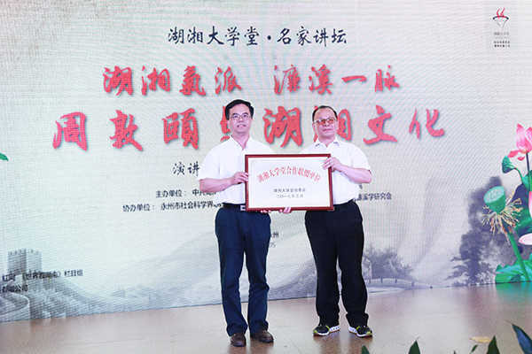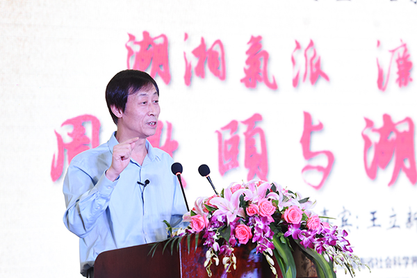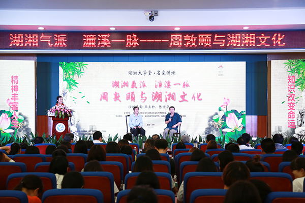 陈弘在致辞中对省委宣传部、省社科联、湖南卫视等专家媒体对我校的厚爱表示真诚的感谢。他指出,今天我们在这里一同分享王立新教授、张京华教授对周敦颐与湖湘文化的独到阐释,这是湖南社科界的一次精神盛宴,更是我校难得的一场文化甘霖。陈弘还深刻阐述了湘人周敦颐对中国传统文化产生的重大影响。他希望通过此次活动,进一步弘扬濂溪文化,为推进湖湘地域文化的发展奠定更加坚实的基础。