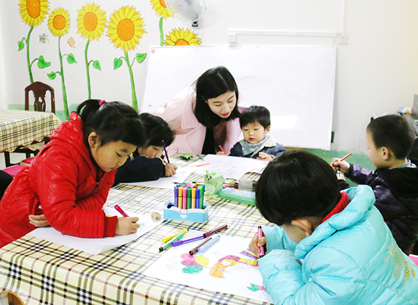 本网讯 3月7日,由我校教工团总支和校团委联合开办的教职工子女课外兴趣培养班上情谊浓浓,小朋友们在我校美术与艺术设计学院同学们的指导下,精心绘制一幅幅充满创意的作品,为妈妈送上“三八”节的祝福。