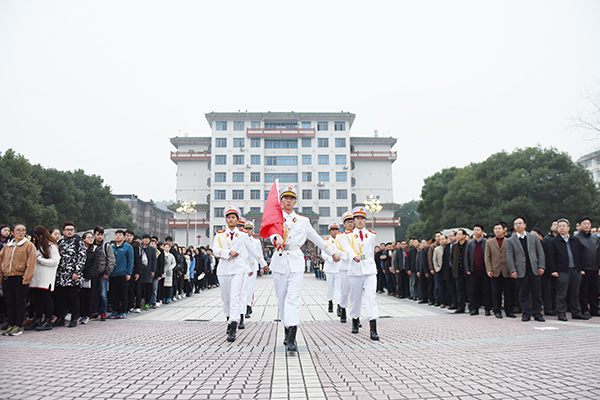 本网讯 隆冬时节寒意正浓,但阻挡不了我校师生对新年的美好期盼。1月3日清晨,学校隆重举行新年升国旗仪式,校党委书记陈弘、校长曾宝成及全体校领导出席升旗仪式,全校中层干部、机关工作人员、学生辅导员及教师代表、2016级全体学生4000余人共同度过了这一庄严时刻。