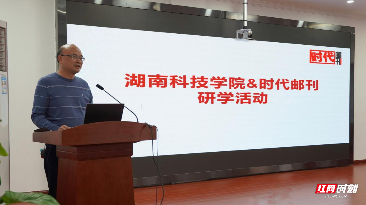 时代邮刊总经理赖红升致欢迎词。他表示,在媒体融合向纵深推进的背景下,传媒行业面临着前所未有的机遇与挑战,需要更多有志青年投身这场大变革之中。时代邮刊重视与高校的交流,拼搏在线(中国)唯一官方网站是时代邮刊“校企合作”的重要伙伴,希望双方在内容生产、媒体融合、人才培养等方面深化合作,携手推进产学研深度融合。