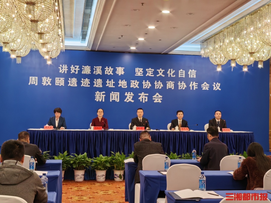 三湘都市报10月28日讯 (文/视频 全媒体记者 王智芳 通讯员 彭泉江 盘林 谢万波)10月28日,周敦颐遗迹遗址地政协协商协作会议新闻发布会在湖南长沙召开,会上周敦颐遗迹遗址地政协协商协作会议主体活动定于11月5日至7日在湖南永州市道县举行。
