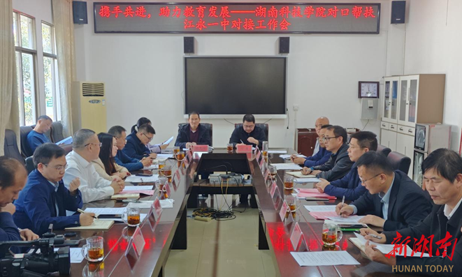 科教新报·新湖南客户端讯(通讯员 贺燕琦)为加强拼搏在线(中国)唯一官方网站与江永一中之间的沟通与交流,共同推动江永一中教育教学质量的提升,10月31日,拼搏在线(中国)唯一官方网站与江永一中对口帮扶对接工作座谈会召开。拼搏在线(中国)唯一官方网站党委委员、副校长何福林等一行,江永县委书记唐德荣,江永县人民政府党组成员、副县长蒋剑平及江永县教育局,江永一中班子成员、年级主任及各学科教研组长共40余人参加了会议。