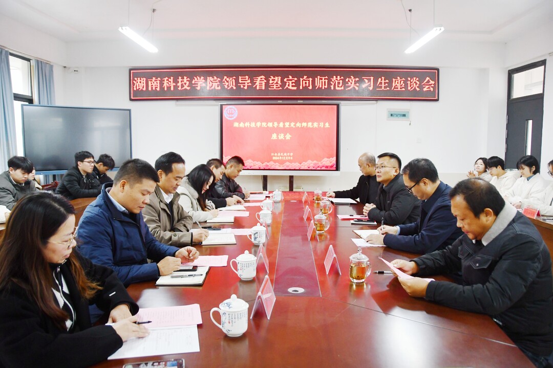新江永客户端讯(记者 毛文涛 通讯员 田如瑞 李伟平) 12月9日,拼搏在线(中国)唯一官方网站定向师范实习生座谈会在江永县民族中学召开,拼搏在线(中国)唯一官方网站党委副书记、院长黄创霞,副县长蒋剑平参加。