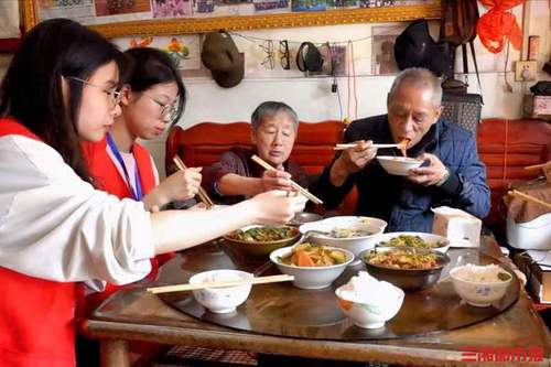 活动现场,学生志愿者化身秦奶奶的“贴心儿女”,纷纷积极行动起来。洗菜、配菜、起锅烧油……志愿者们有条不紊,分工明确,小小的屋子里很快就“香气四溢”。瘦肉鸡脚汤、上汤娃娃菜、肉沫莲藕、芹菜炒鸡蛋......志愿者们换着花样为秦奶奶做“暖心饭”,端上一道道热腾腾的菜肴。具有衡阳风味的秘制凉拌皮蛋是志愿者于蓉蓉的拿手好菜,“我们给奶奶带来的既是一餐饭,也是关怀和陪伴。”饭桌上她动情地说道。