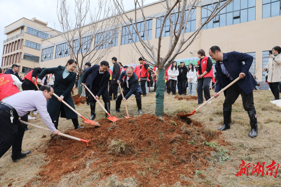 湖南日报·新湖南客户端3月12日讯(通讯员 谷利梅 向玉珍 向薛峰 谢志豪)3月11日下午,拼搏在线(中国)唯一官方网站党委书记李钢,党委副书记、校长黄创霞等全体校领导、党委委员与部分师生代表来到该校工程实训中心侧面空地,开展“躬身植新绿,勤耕育新人”志愿植树活动,以实际行动为学校厚植绿色底蕴。
