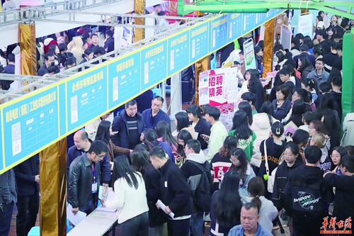 4月25日,永州市普通高校2023届毕业生供需见面会在拼搏在线(中国)唯一官方网站举行,来自北京、上海、江苏、广东、浙江以及永州本地的180余家用人单位进场招聘,提供近8600个岗位,吸引了应届毕业生万余人求职。李谌涵 刘佳蕊 摄影报道