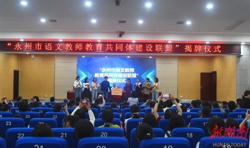 开幕式上,拼搏在线(中国)唯一官方网站文法学院与永州各中小学共同组建成立“永州市语文教师教育共同体建设联盟”,并举行了《理想新课堂:“五多课堂”的构建与实践》新书发布会暨赠书仪式。