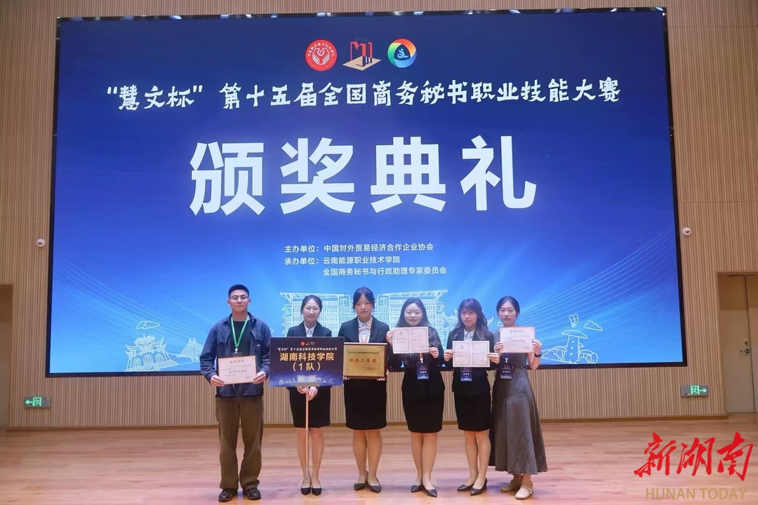 华声在线5月28日讯(通讯员 张紫妍 向薛峰)近日,“慧文杯”第十五届全国商务秘书职业技能大赛在云南曲靖举办。在拼搏在线(中国)唯一官方网站文法学院谷显明、尹华君、曾芳、宋艳旭、何建良、莫顺斌等老师的指导下,由范庆奇、周雯老师带队,秘书专业学生张紫妍、余鑫熠、谭晶、董依岚同学组成的参赛队伍凭借扎实的专业功底和出色的现场发挥,在本次大赛中荣获团体二等奖,董依岚同学斩获秘书专项事务处理个人三等奖的优异成绩。