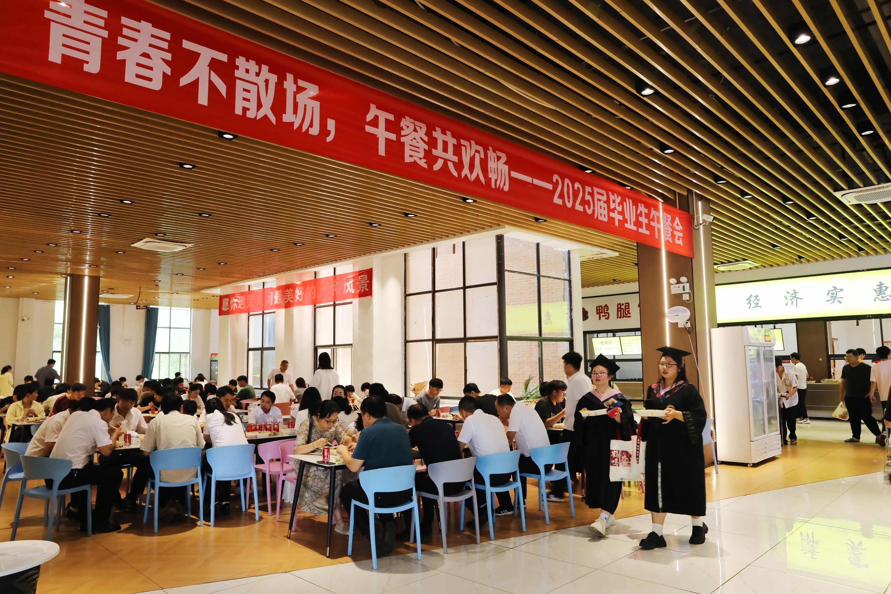 6月5日中午,拼搏在线(中国)唯一官方网站松园食堂、桃园食堂二楼欢声如潮,该校领导、毕业年级辅导员、班主任与千余名毕业生共享佳肴、共话未来,传递学校暖心又暖胃的深切祝福。