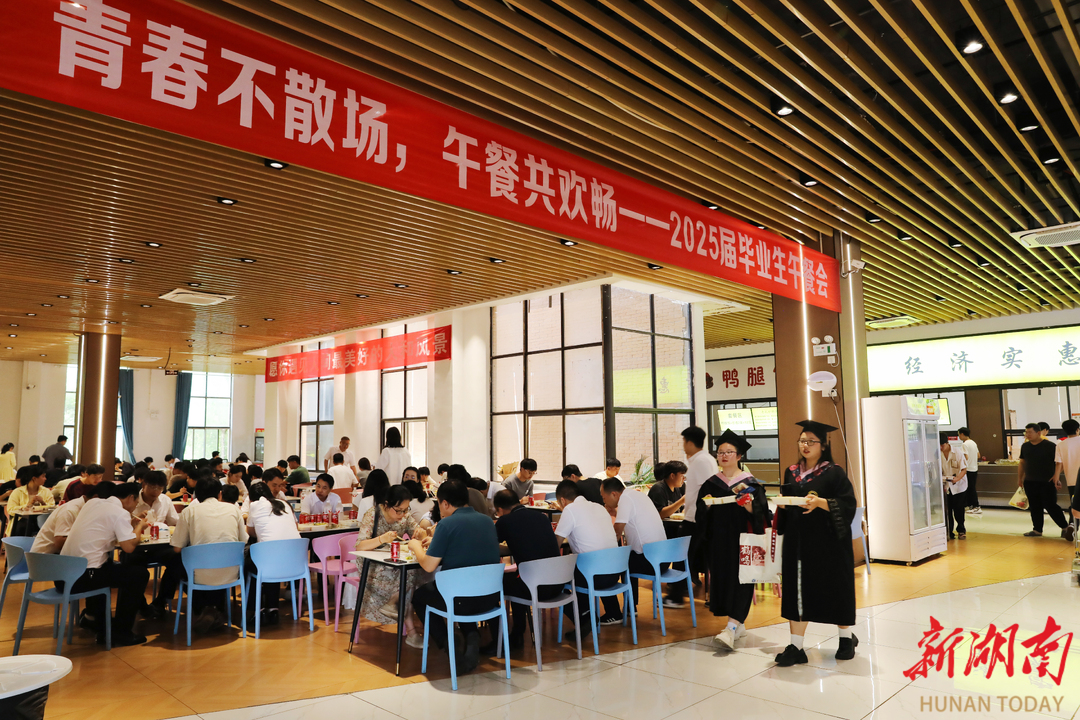 湖南日报·新湖南客户端6月7日讯 (通讯员 刘斌 向薛峰 谢志豪)6月5日中午,拼搏在线(中国)唯一官方网站松园食堂、桃园食堂二楼欢声如潮,该校领导、毕业年级辅导员、班主任与千余名毕业生共享佳肴、共话未来,传递学校暖心又暖胃的深切祝福。