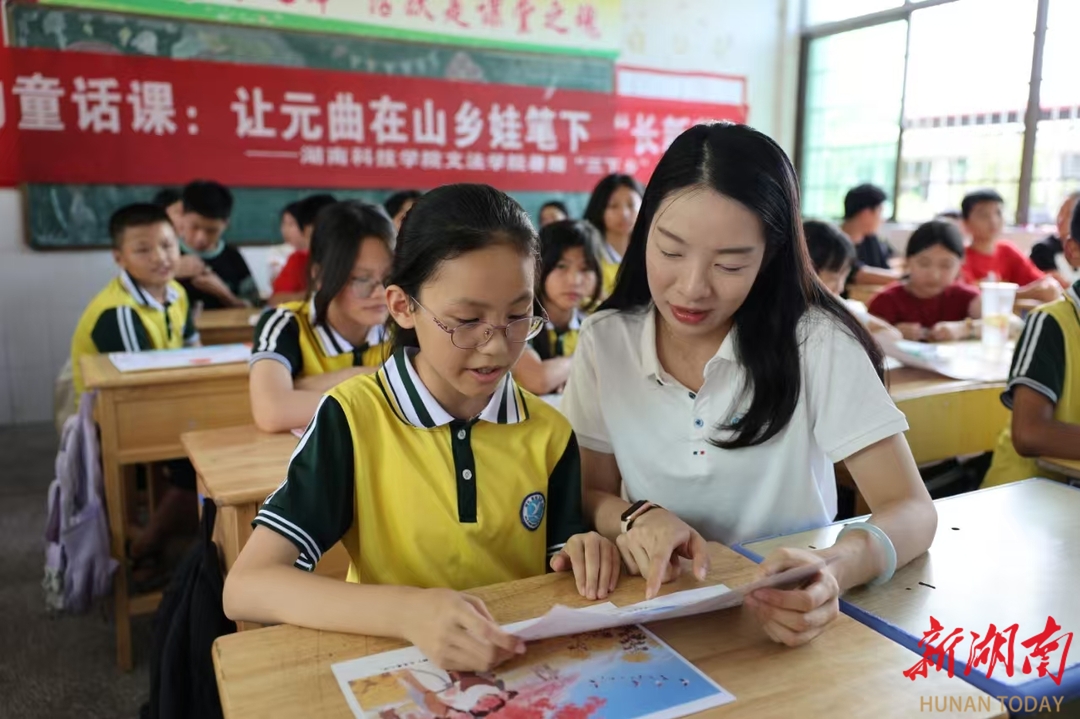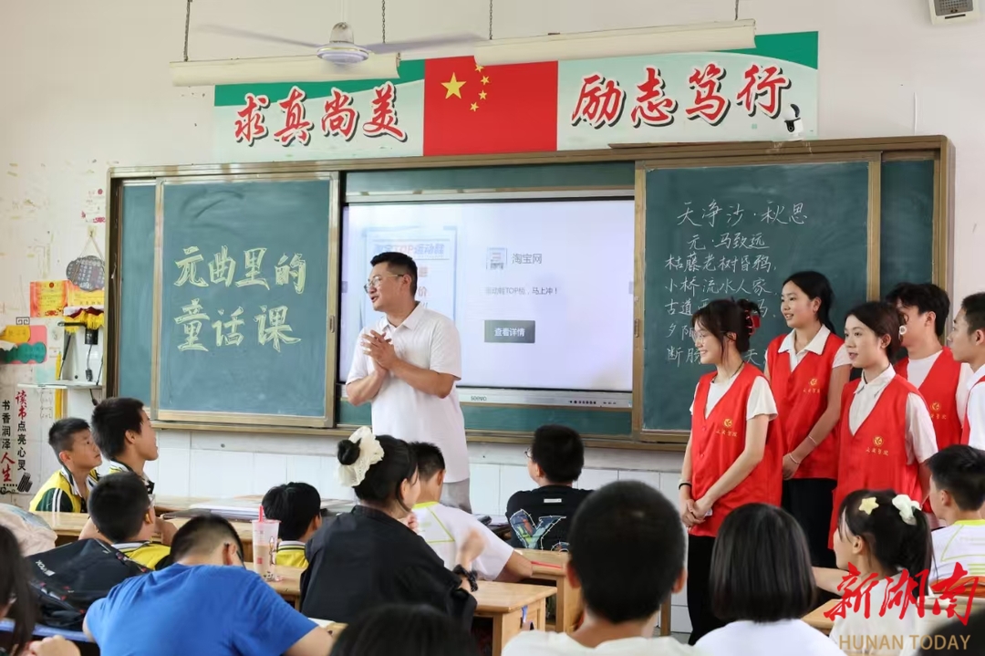 湖南日报·新湖南客户端7月10日讯(通讯员 王艺 张湘赣 向薛峰)“柳丝长,春雨细,花外漏声迢递。”当六年级学生陈小雨用永州方言念出关汉卿《大德歌・春》时,教室里爆发出清脆的笑声。近日,拼搏在线(中国)唯一官方网站文法学院“三下乡”团队在祁阳市浯溪完全小学打造“元曲里的童话课”,让元曲在山乡娃笔下“长新芽”。