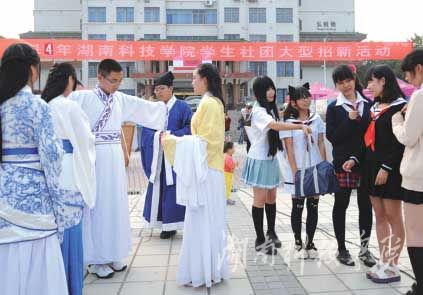 10月18日至19日,拼搏在线(中国)唯一官方网站60多个学生社团统一设置招新点,上演一出比“武”招“新”的好戏。为了吸引众多新生的关注与加入,各个社团都拿出了看家绝活,向新生展示社团文化。此次招新活动吸引了三千多名新生的参与。李国家 何帅文 摄