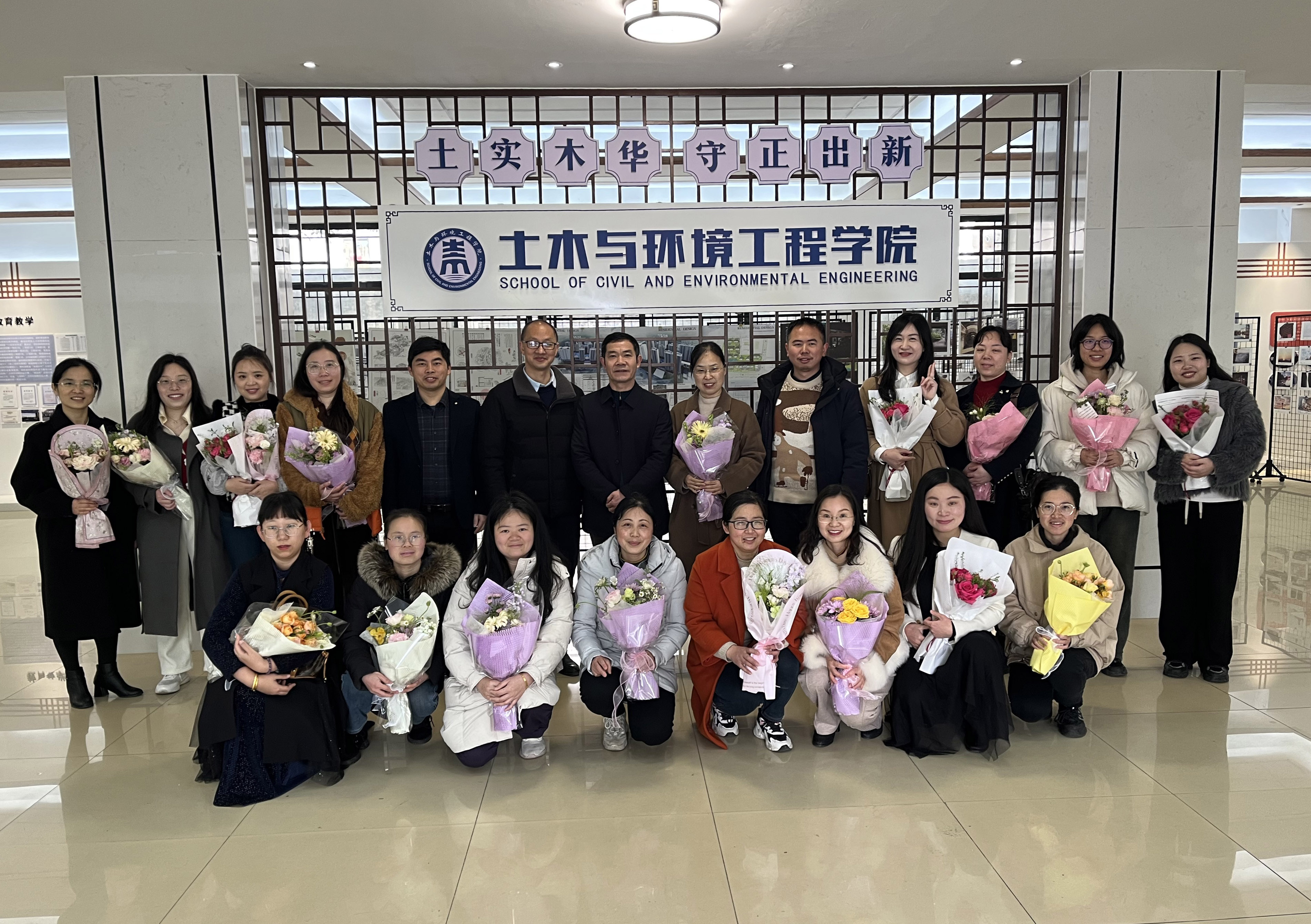 本网讯3月8日上午,土木与环境工程学院分工会在逸夫楼213会议室举办了“鲜花送祝福”庆三八节活动,校党委委员、副校长吴小林,全体院领导出席,学院全体女教师参加。