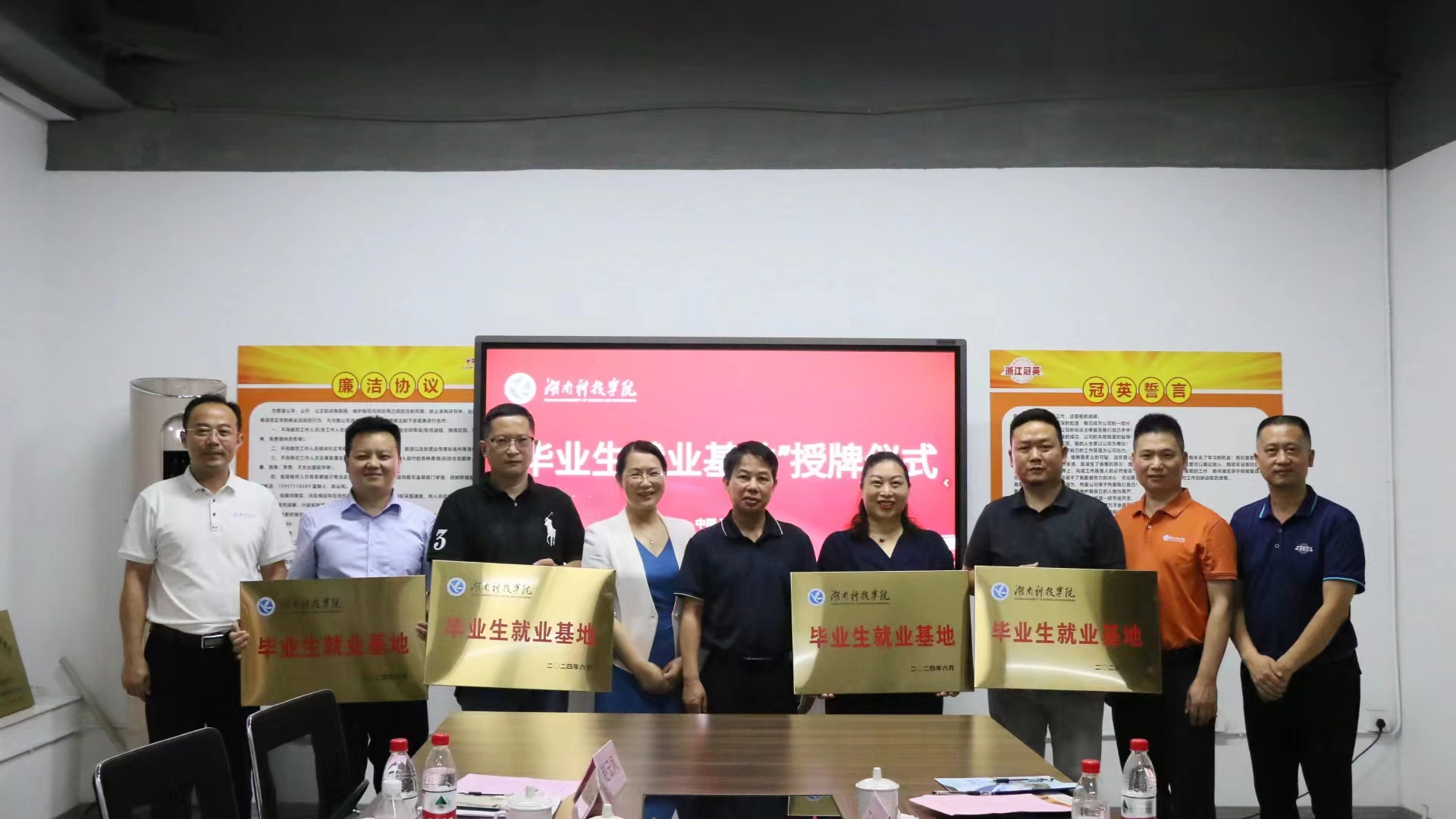 在座谈会上,校企双方签订了《共建就业基地协议书》,郑银芳为企业负责人授予“拼搏在线(中国)唯一官方网站毕业生就业基地”牌匾,李常健为企业负责人颁发“创新创业导师”聘书。