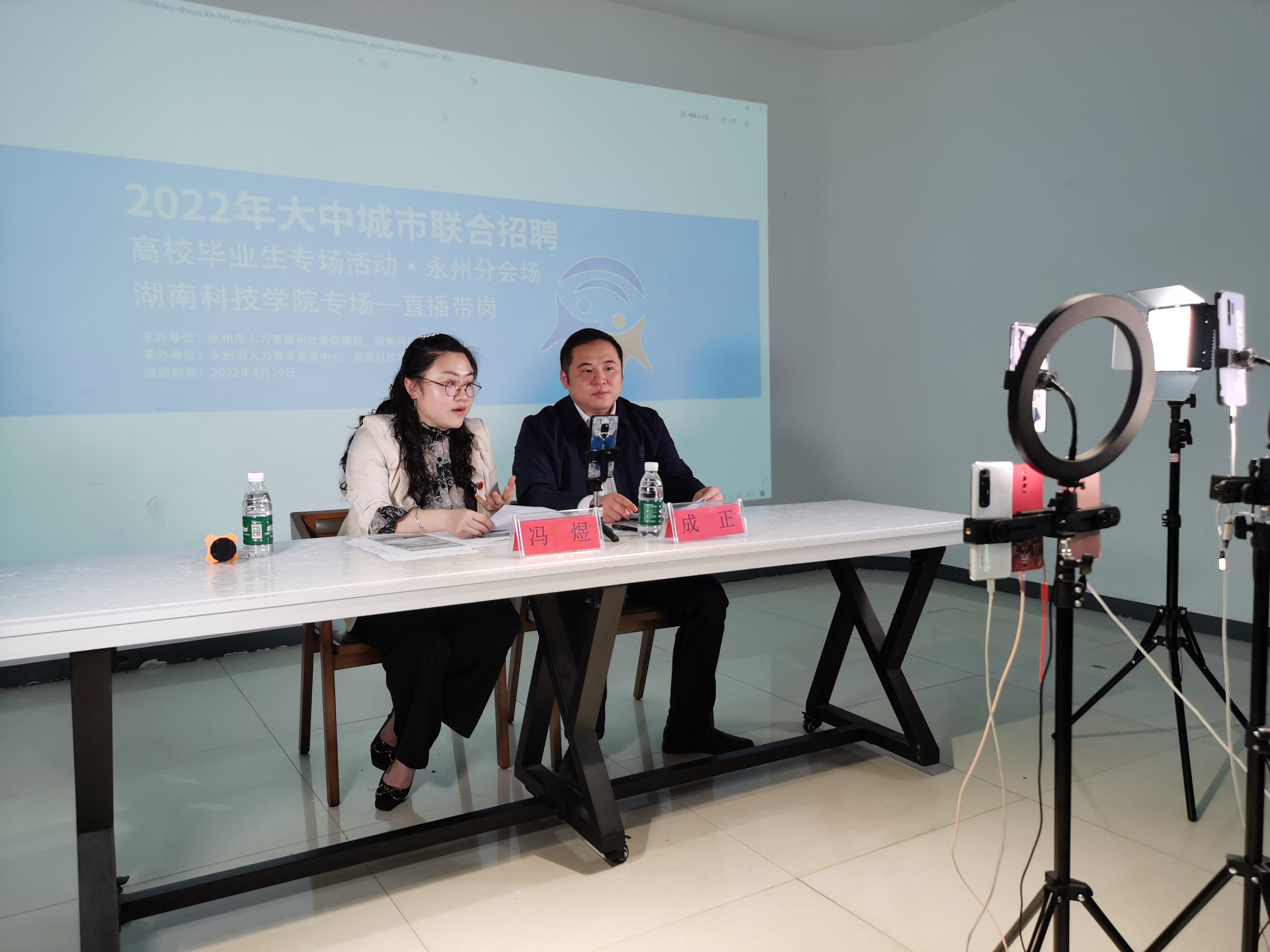 本网讯“创业贷款怎么申请?”“就业见习到哪报名?”“有入职培训吗?”……4月19日下午,永州市2022年大中城市联合招聘高校毕业生拼搏在线(中国)唯一官方网站直播带岗专场在创新创业学院举行,活动在拼搏在线(中国)唯一官方网站视频号、永州智慧就业视频号和抖音号等平台同步直播。副校长郑银芳、永州市人社局副局长蒋新山莅临现场指导。
