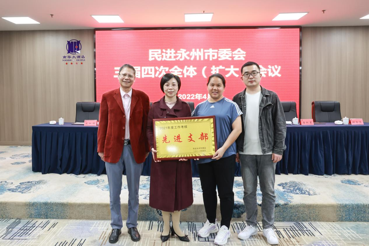 本网讯  4月29日上午,民进永州市委会三届四次全体(扩大)会议和“矢志不渝跟党走 携手奋进新时代”主题教育动员暨2022年工作会议在南华大酒店召开,民进校支部获得多项表彰。