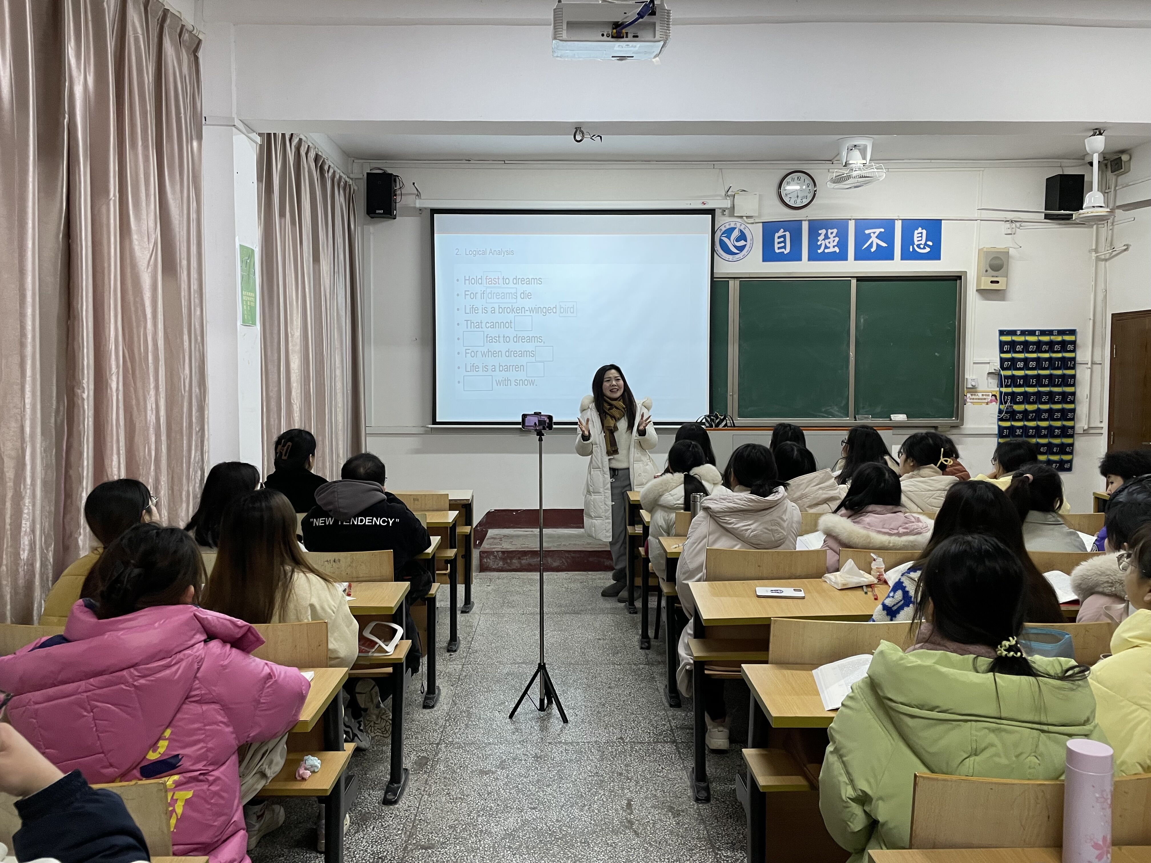 本网讯 春节开学之际,国内多地受疫情影响,仍有许多学生未能返校正常上课。外国语学院对于未能返校学生的学习状态高度重视,让各班开展线上直播上课等行动以满足学生学习需求。