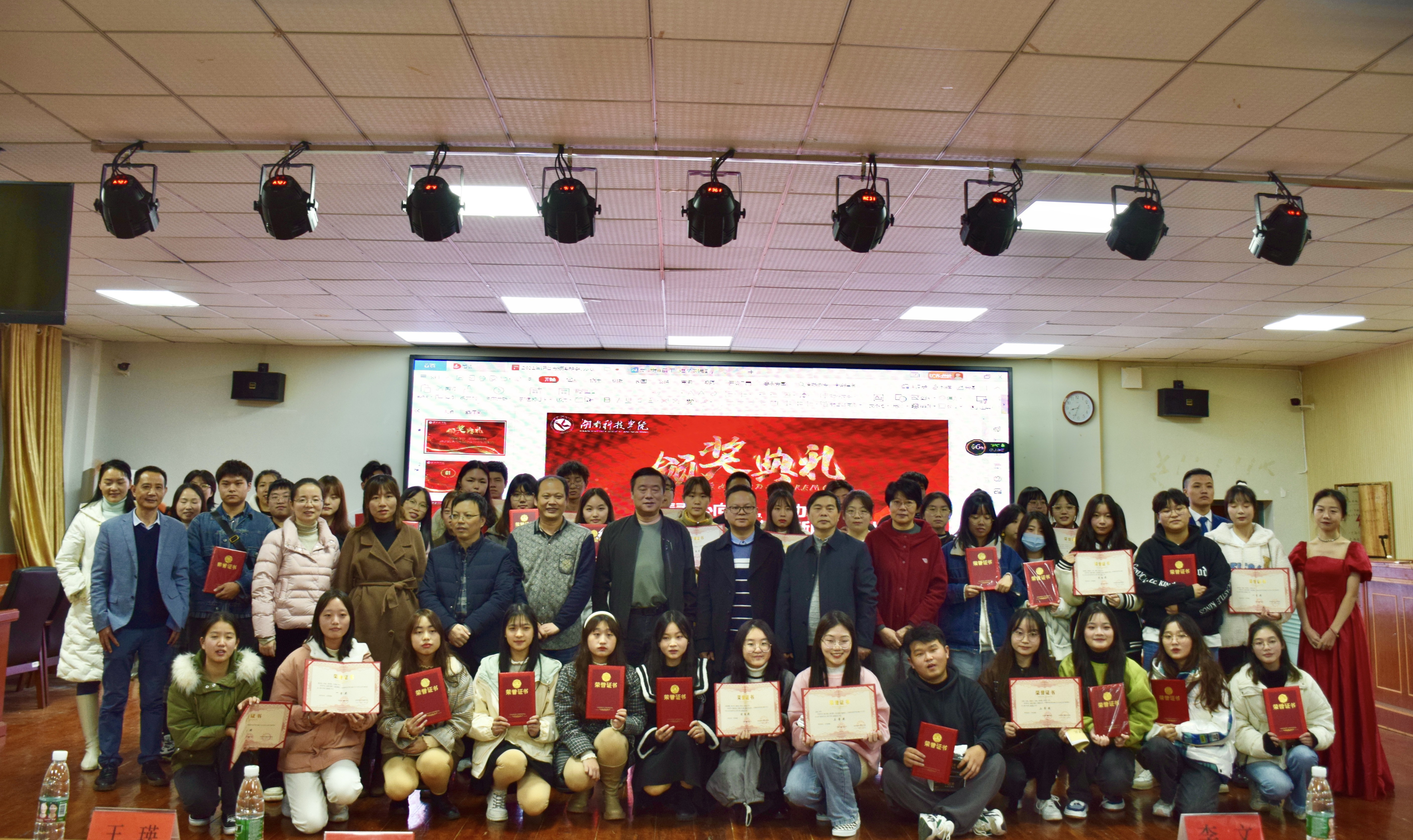 本网讯 为庆祝第二十二个记者节,增强学生的新闻业务能力,11月8日晚,传媒学院举行2021年大学生记者节新闻作品大赛颁奖典礼。传媒学院院长龙运荣、党总支书记王瑛、副院长潘庆红、丁陆爱、学校教务处副处长李文、以及广电系全体师生参加此次颁奖典礼。