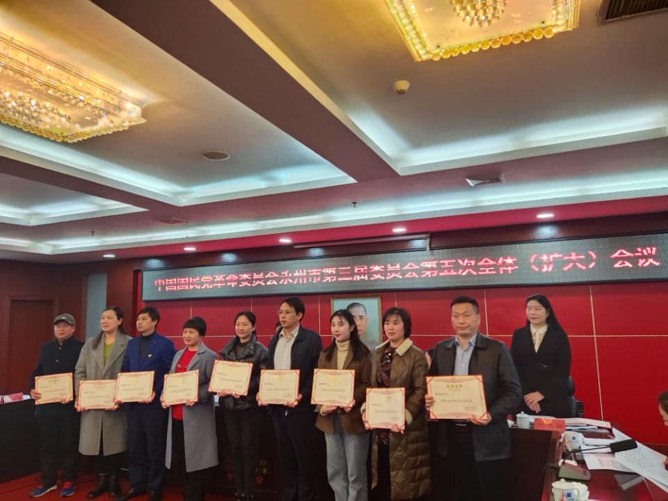 本网讯 3月21日上午,民革永州市第三届委员会第五次全体(扩大)会议在冷水滩召开,会议表彰了先进。民革拼搏在线(中国)唯一官方网站支部荣获先进支部,这也是民革永州市委2013年开展争先创优以来民革校支部第五次荣获先进支部。陈义勇荣获优秀党员,方芳荣获优秀党务工作者,民革校支部提交的调研报告获2020年度永州市政协好调研二等奖。