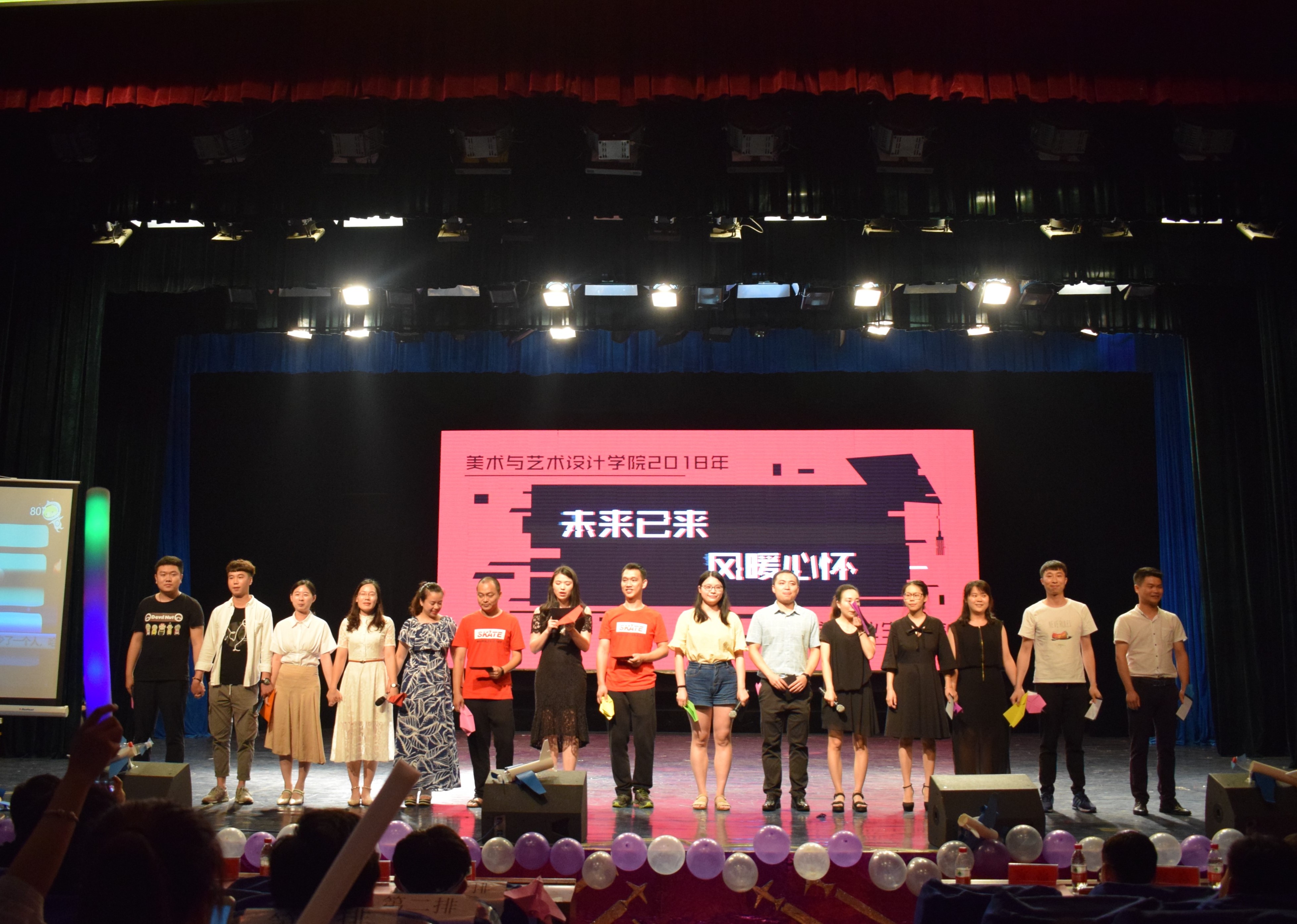 本网讯 61日晚上,美术与艺术设计学院音乐厅举行“未来已来,风暖心怀”2018届毕业生欢送晚会。该院院长张建利以及全院师生共同观看了晚会。