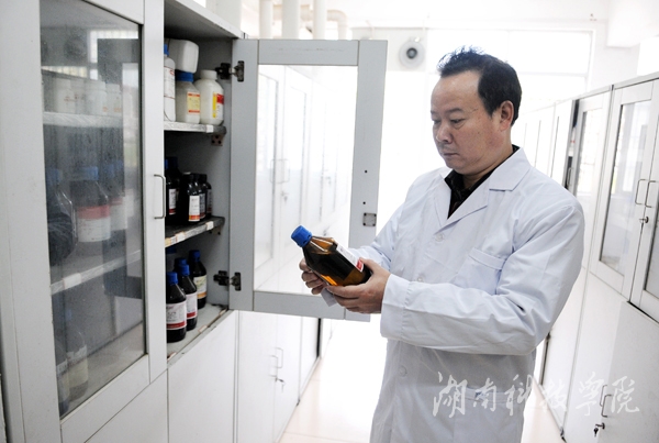 为了更好地推进工作,唐老师自任现职以来,不断抓住机会为自己“充电”,他系统地学习了化学、生物工程、食品质量与安全等专业教材,了解并掌握各课程实验的常用器械及各种常用器械的装配与使用操作要领,存放及用后处理方法、化学试剂的养护知识,从而降低损耗,严防事故。唐老师将学习的理论知识与实践操作相结合,近年来,他主持参与省级、市级、校级课题各一项,发表与实验室管理有关的论文12篇,此外,他还参与了我校生化系教材《现代仪器分析与食品质量安全检测》的编撰。2008年,他的论文“高校实验室环境污染分析与污染防治研究”获得全国教研成果一等奖;2009年,他发表的论文“混凝剂三氯化铁稀溶液的水解及防治”获得永州市第七届自然科学优秀学术论文竞赛三等奖。“作为实验室专职管理人员,他并没有仅仅拘束于工作,而是敞开眼界追求学术,并且已经获得了较好的成就,这一点他非常了不起。”他的同事刘芳老师说道。