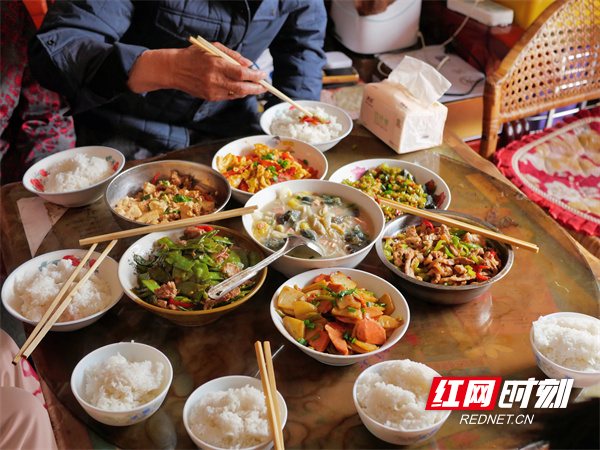 活动现场,学生志愿者化身秦奶奶的“贴心儿女”,纷纷积极行动起来。洗菜、配菜、起锅烧油……志愿者们有条不紊,分工明确,小小的屋子里很快就“香气四溢”。瘦肉鸡脚汤、上汤娃娃菜、肉沫莲藕、芹菜炒鸡蛋……志愿者们换着花样为秦奶奶做“暖心饭”,端上一道道热腾腾的菜肴。具有衡阳风味的秘制凉拌皮蛋是志愿者于蓉蓉的拿手好菜,“我们给奶奶带来的既是一餐饭,也是关怀和陪伴。”饭桌上她动情地说。