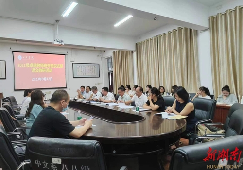 科教新报·新湖南客户端讯(通讯员 )9月12日下午,湖南科技学学院文法学院在明德楼207会议室举行2021级卓越教师班开班仪式暨语文教研活动。本次活动特邀永州第九中学教务主任陈清渠,语文教研组唐鸟平、韩燕、付亚玲老师来校交流。文法学院院长谷显明,副院长肖智成、包红光、周玉华,永州语文教育研究中心主任刘忠华、中文系副主任尹华君等出席活动。