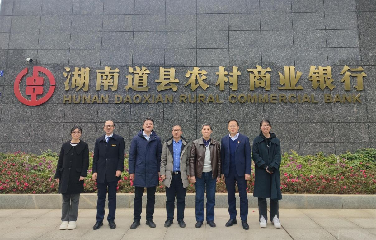 肖智成副院长一行在道县农商银行蒋正副行长、唐舜经理的陪同下参观了银行的文化展厅,随后就实习工作与人才培养进行了深入座谈。