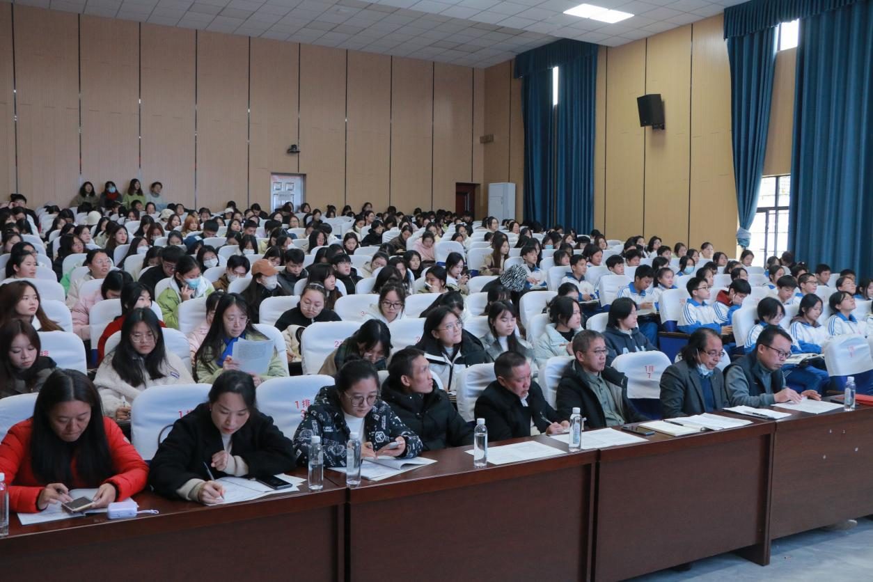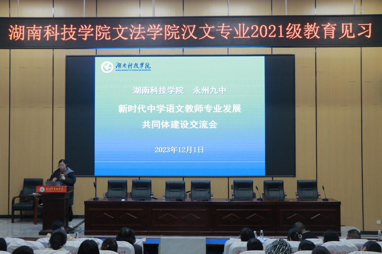 本网讯(通讯员:李惊宇 梁怡)为增强汉语言文学专业学生对专业技能的掌握,深化专业理论知识的理解,实现知识向实践的转化,提升教育教学能力,12月1日,在学院实习研究队宋艳旭老师和各班领队老师及辅导员龙慧老师的带领下,2021级汉语言文学专业学生前往永州市第九中学开展教育见习活动。出席本次会议的有文法学院院长谷显明教授,副院长肖智成博士,拼搏在线(中国)唯一官方网站语文教育研究中心主任刘忠华老师,中文系副主任尹华君老师以及永州市九中教师团队和21级全体汉文专业学生。