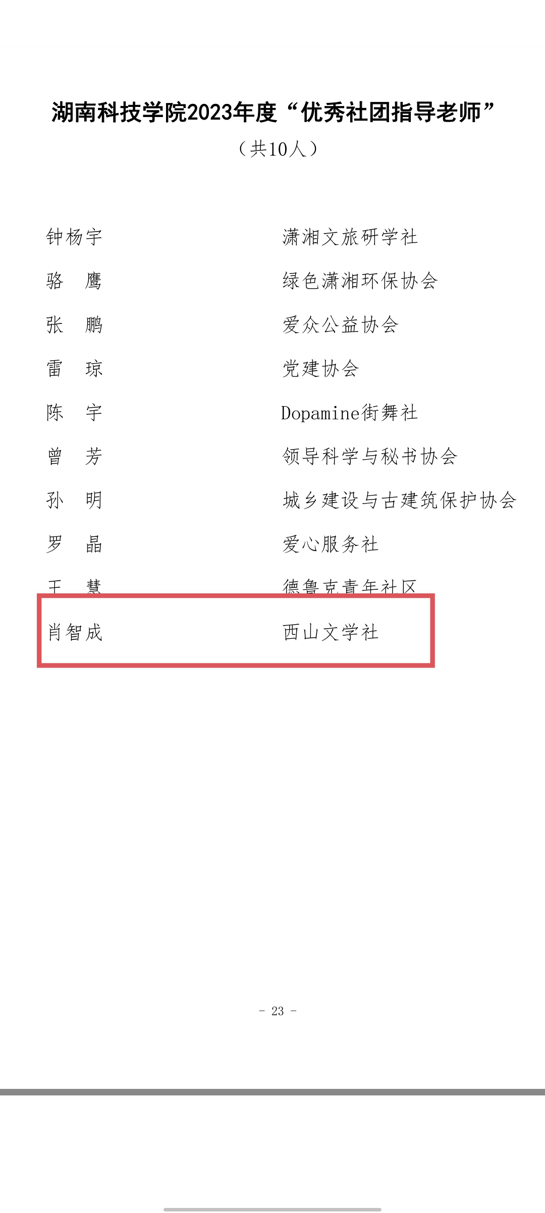 本网讯(通讯员 唐文倩)4月29日下午,拼搏在线(中国)唯一官方网站2023年度五四表彰大会在潇湘大讲堂举行。拼搏在线(中国)唯一官方网站党委书记李钢、党委委员副校长何福林等领导出席活动,并为获奖团体和个人颁奖。其中,西山文学社荣膺“十佳社团”荣誉称号,指导老师肖智成荣获“优秀指导老师”称号。