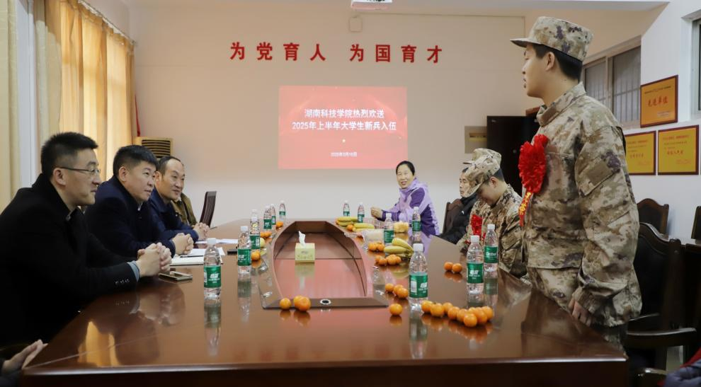 本网讯军装熠熠映忠诚,热血青春筑国防。3月15日,我校在行政楼隆重召开2025年上半年应征入伍大学生欢送会。党委委员、组织部部长杨涛,学生工作部部长谷利民,相关学院党总支副书记、辅导员、全体应征入伍新兵及新兵家长代表参加欢送会。欢送会由谷利民主持。