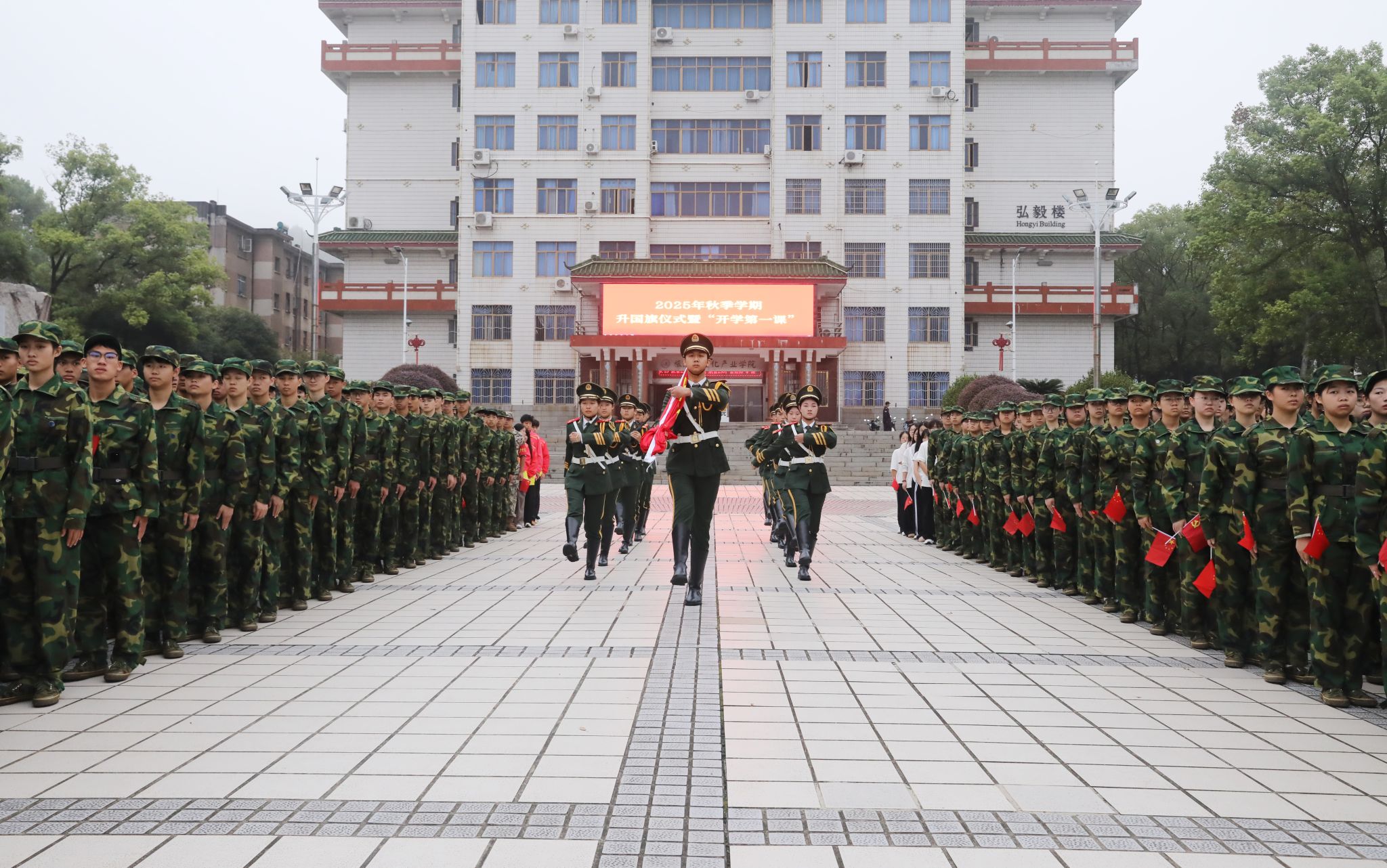 本网讯(记者 谷利梅 孙淑娴 摄影 谢志豪)辞夏迎秋,再启新程。9月28日,学校全体在校校领导、党委委员及1000余名师生齐聚舜德广场,举行2025年秋季学期升国旗仪式暨“开学第一课”。校党委书记李钢作国旗下的讲话,校长黄创霞主持升旗仪式。