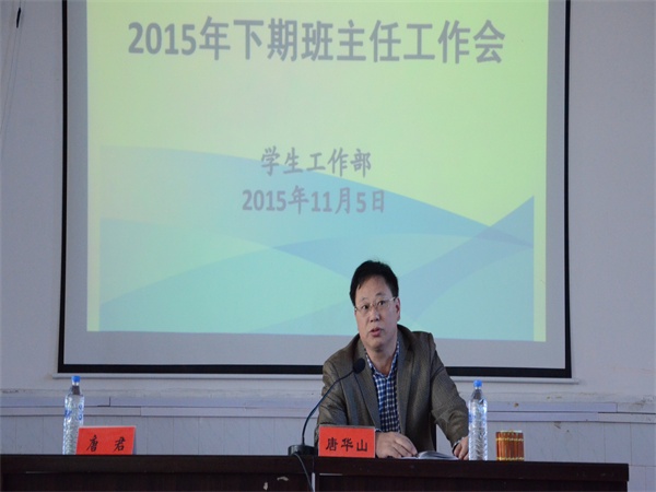 会上,学工部长唐华山就“班主任队伍建设的重要性和必要性”、“为什么要当班主任?”以及“如何当好班主任?”与全体班主任进行深入探讨。唐部长提出,高校班主任队伍是从事德育工作、开展大学生思想政治教育的骨干力量,是大学生健康成长的指导者和引路人。他希望各班主任能深切体会到班主任工作的意义,热爱自己的本职工作,用真心、爱心、热心和细心去关心学生成长成才;希望各学院能进一步加强班主任队伍建设,使我校班主任工作得以持续、健康、平稳发展。