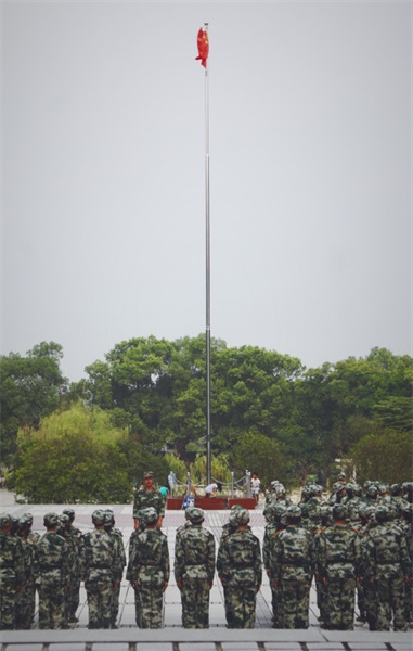 之后的当天下午,同学们在校园的各个方位集合整队,随之而来的还是高强度的分列式训练。阳光炙热依旧,但同学们丝毫没有退缩,他们继续在军训中锻造自己,在军训中收获忍耐、坚强、蜕变……