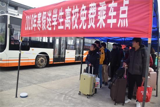 本网讯(胡敏辉邓强左璐瑶)寒假来临,春节将至,拼搏在线(中国)唯一官方网站党委高度重视学生安全离校工作。2018年1月20日至1月24日,特租用公交巴士免费送学生至冷水滩火车站、汽车站,情暖学子回家路。