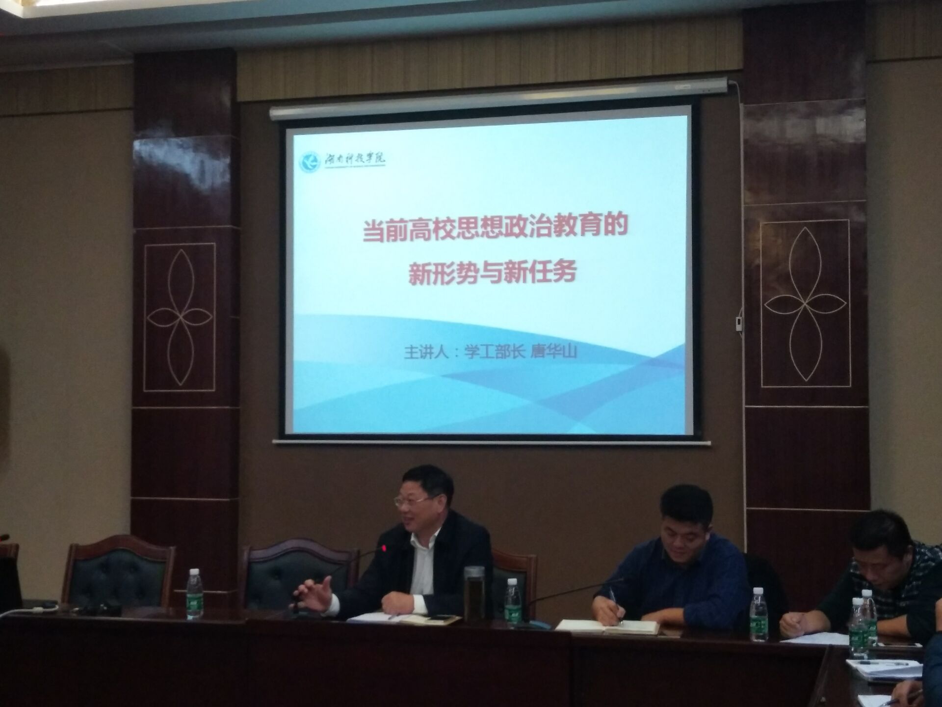 随后,唐部长以“当前高校思想政治教育的新形势新任务”为题发言,与大家进行交流研讨。他提到,从世情国情党情来看,我们必须全面准确把握党对高等教育事业提出的新要求,坚持扎根中国大地办大学的理念,要以培养担当民族复兴大任的时代新人为着眼点,落实立德树人根本任务,全面提升人才培养质量。他强调,要在坚定理想信念、厚植爱国主义情怀、加强品德修养、增长知识和见识、培养奋斗精神、增强综合素质等六个方面下功夫,贯彻学校学生工作“一二三四五”的总体思路,完成新时代高校思想政治教育的任务。