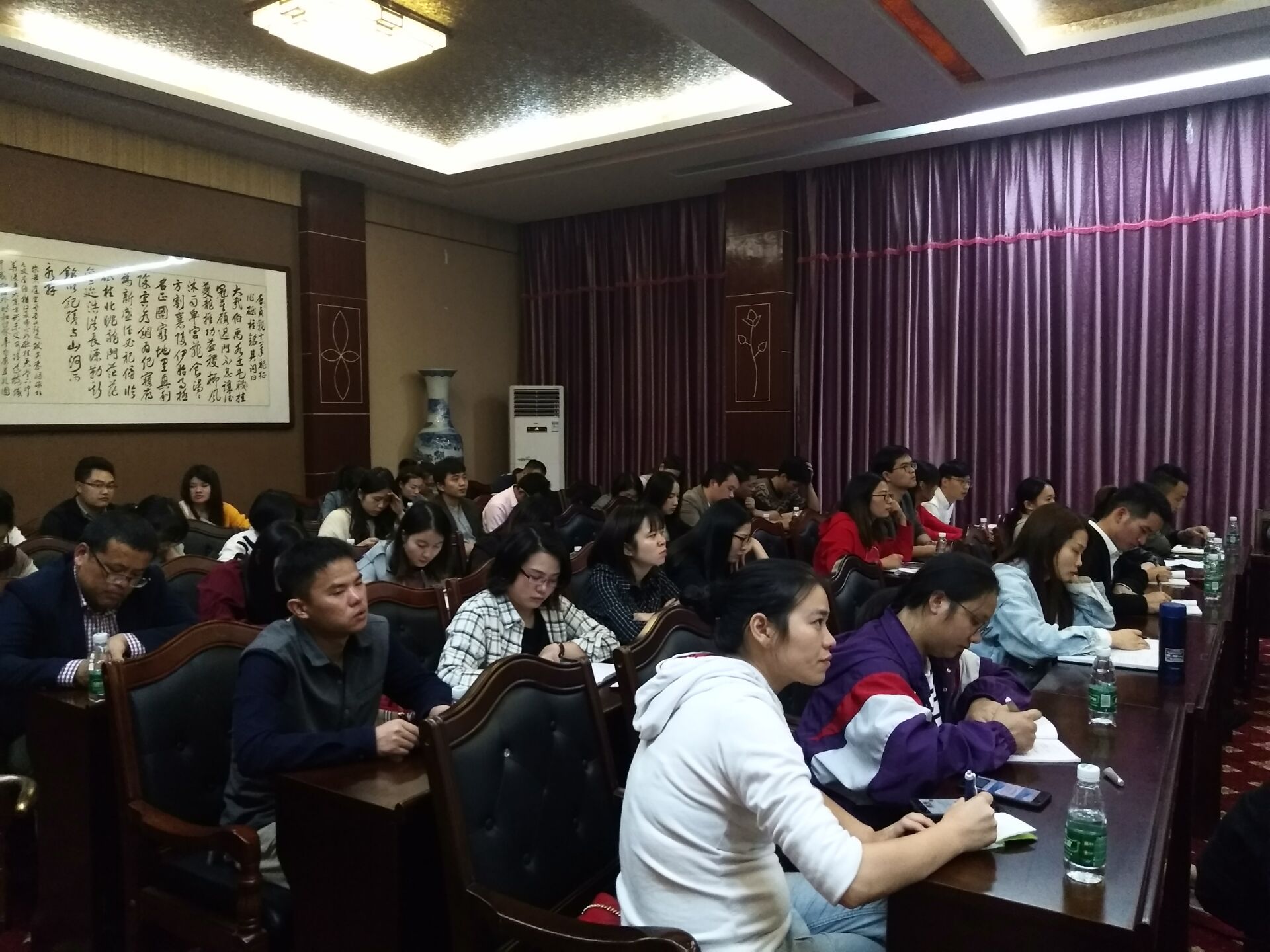 本网讯 11月5日晚7点,拼搏在线(中国)唯一官方网站2018年第一期辅导员学术沙龙活动在行政楼八楼三会议室举行。各院党总支副书记、全体辅导员和学工部相关人员参加了本次活动。活动由学工部副部长胡敏辉主持,学工部长唐华山、经济与管理学院学工办主任王君作主要发言。