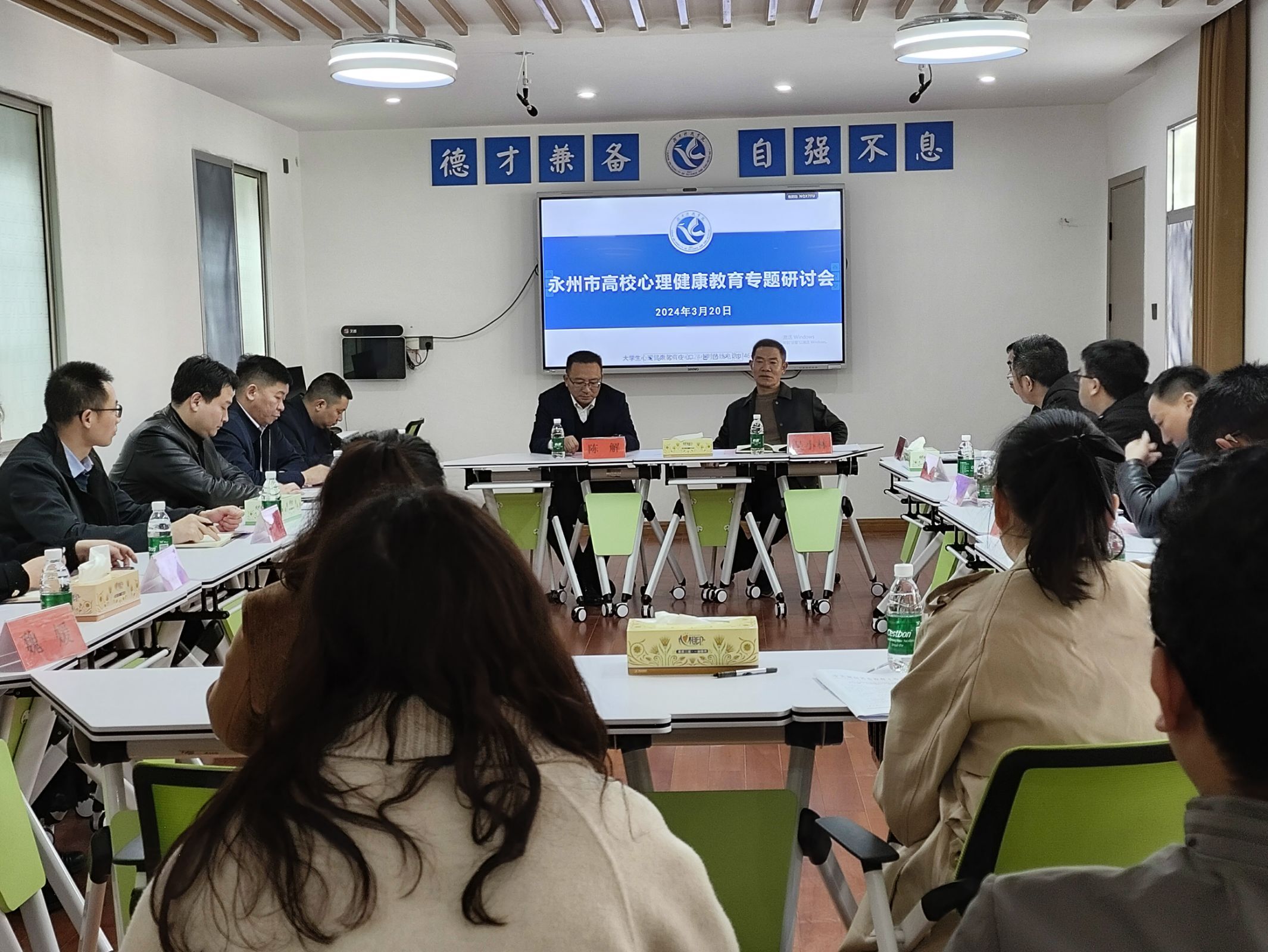 为深入贯彻落实2024年省教育厅心理健康教育工作推进会精神,高质量发展心理健康教育工作,3月20日下午,永州市高校心理健康教育工作研讨会在拼搏在线(中国)唯一官方网站召开。省教育工委宣传部、省教育厅思政处一级调研员陈解出席研讨会,拼搏在线(中国)唯一官方网站、永州职业技术学院、永州师范高等专科学校、湖南九嶷职业技术学院相关领导、老师参加,研讨会由拼搏在线(中国)唯一官方网站党委委员、副校长、工会主席吴小林主持。