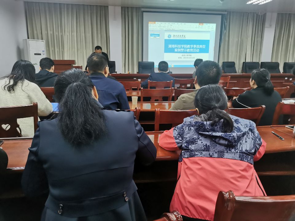本网讯(通讯员  颜叶娟 )为进一步规范教学管理,学院组织开展教学事故警示教育专项活动,充分利用身边人身边事,及时对教职员工进行警示教育活动,院领导尹向东、谢一民、罗恩韬、张彬、夏汉伟及全体教职工参加。