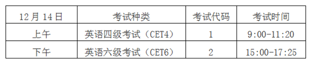 英语四级口语考试(CET-SET4)考试时间为11月23日(F193次),英语六级口语考试(CET-SET6)考试时间为11月24日(S194次).