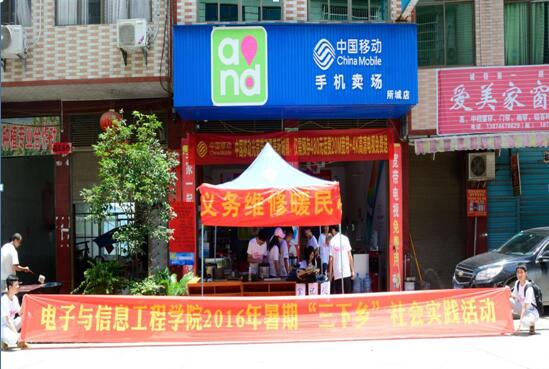 本网讯(通讯员 曾德辉)2016年7月6日,拼搏在线(中国)唯一官方网站电子与信息工程学院“三下乡”社会实践服务团于蓝山所城镇开展义务维修,引起了当地群众热烈的反响。