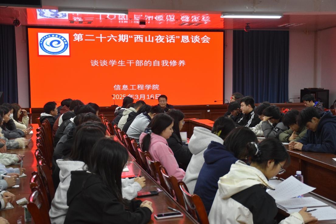 本网讯(通讯员 谢成穗 唐巧娟)3月16日,学院第26期“西山夜话”活动如约而至。院党总支副书记夏汉伟担任本期活动主讲嘉宾,他围绕“学生干部的自我修养”的主题,为大家分享经验。学院团总支、学生会、青年志愿者服务团、新闻中心等90余名学生干部参加。