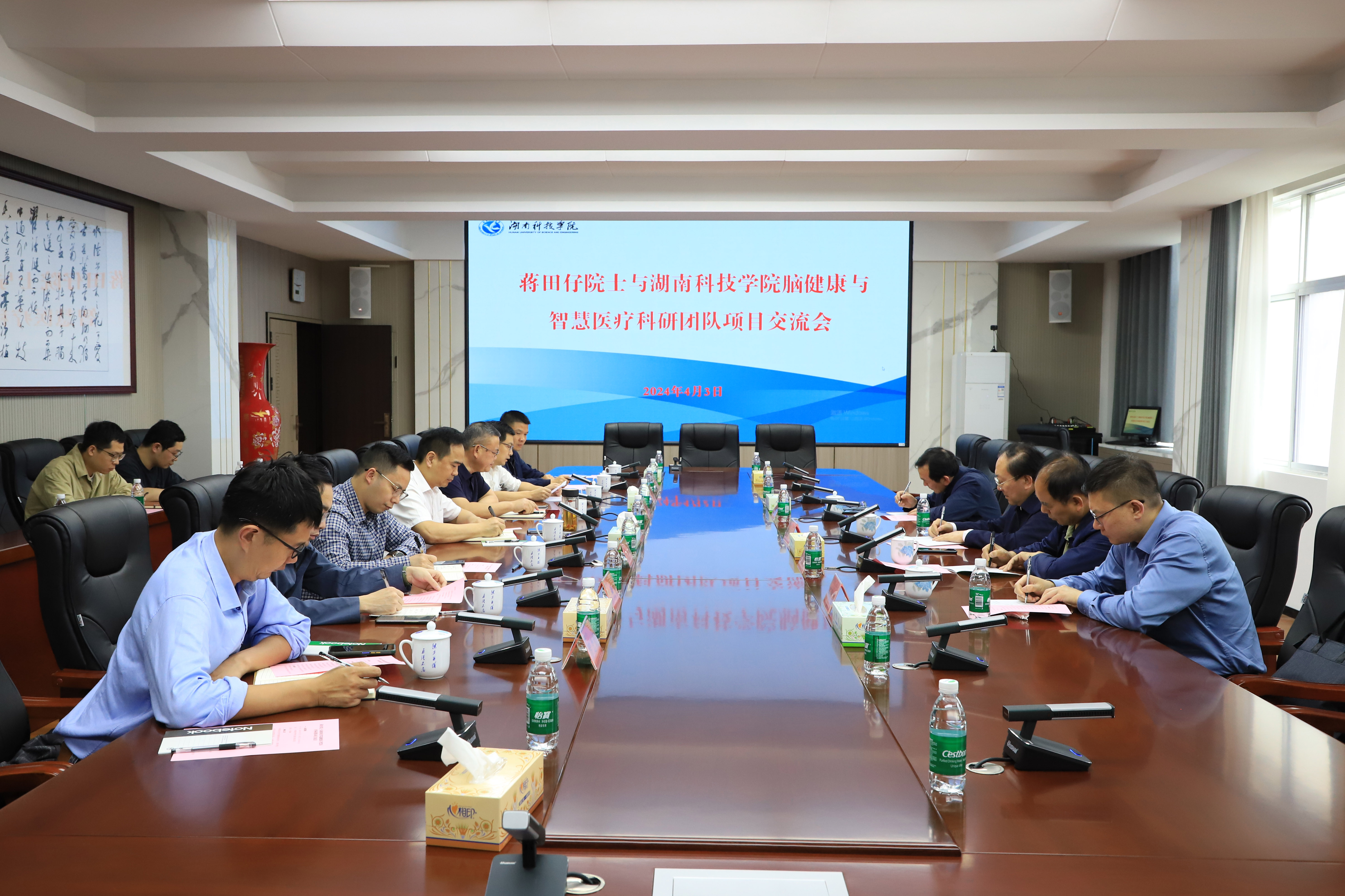 本网讯4月3日,蒋田仔院士与拼搏在线(中国)唯一官方网站脑健康与智慧医疗科研团队项目交流会在学校举行。欧洲科学院外籍院士、中国科学院自动化研究所脑网络组研究中心主任蒋田仔,永州市中心医院党委书记江拥军,校长黄创霞、副校长何福林出席。信息工程学院、化生学院、理学院负责人以及项目组成员等参加交流会。