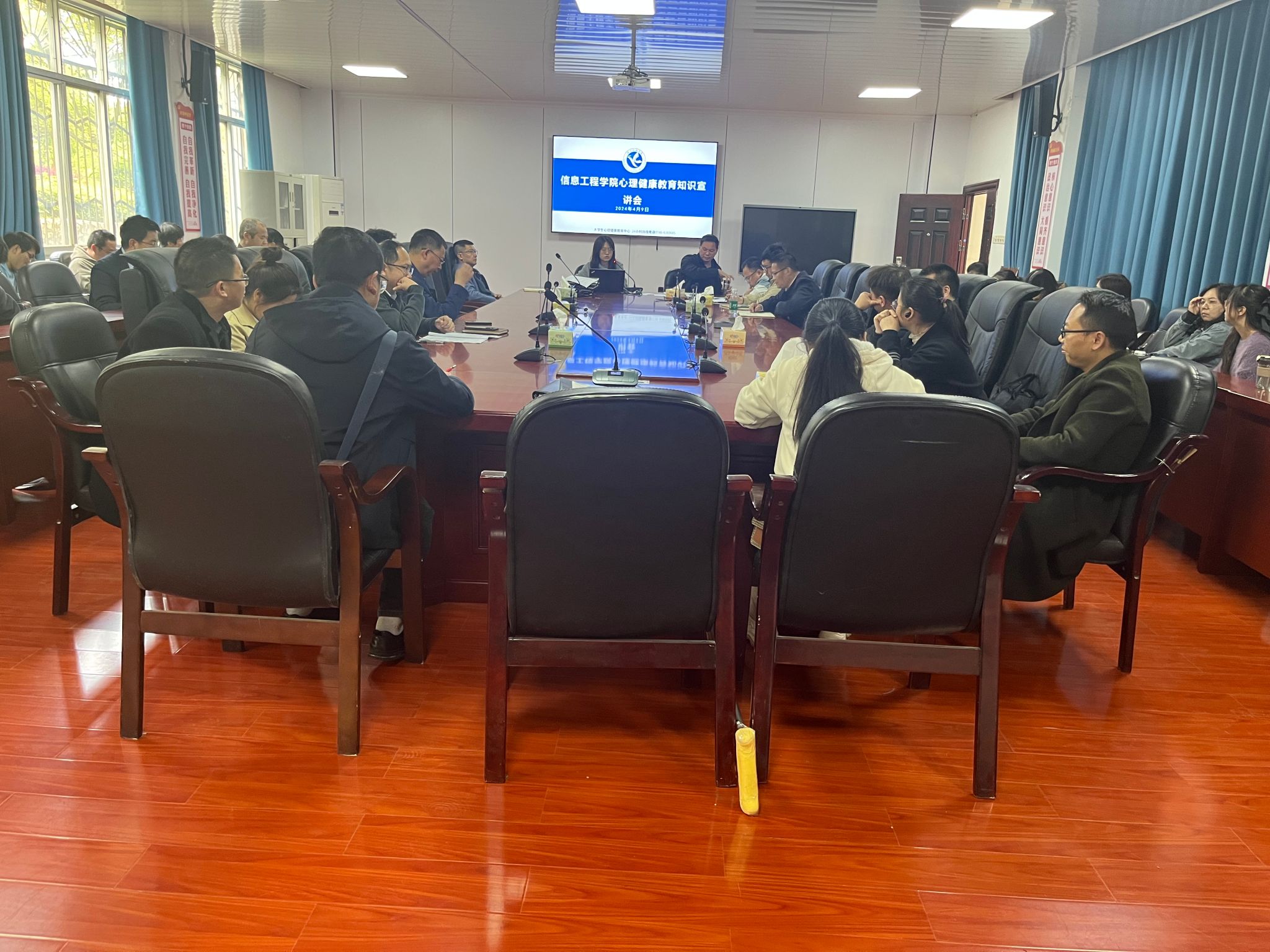 本网讯(通讯员 李舒月 陈星明) 4月9日,信息工程学院组织全体教职工在知行楼106会议室开展2024年第2次政治理论学习暨心理健康教育知识宣讲会,会议由学院党总支书记刘国华主持。