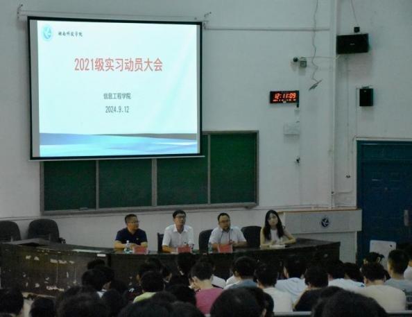 本网讯 (通讯员 黄紫黎)9月12日,学院召开2021级实习动员大会暨就业动员大会。院党总支书记罗恩韬,副院长张彬,党总支副书记夏汉伟,辅导员黄紫黎以及2021级全体学生参加。会议由夏汉伟主持。