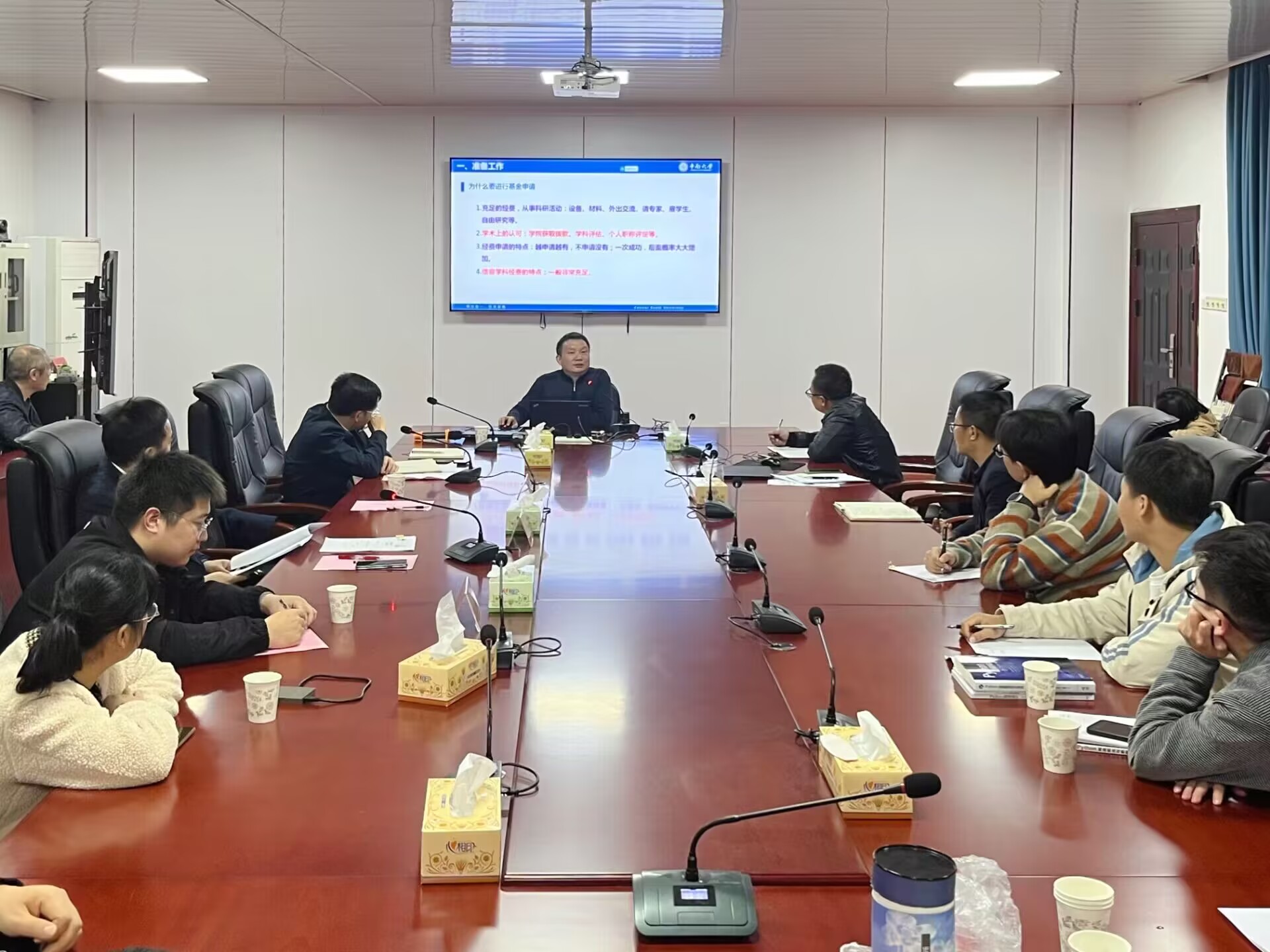 郭克华以《科研基金申报剖析--以国家自然科学基金为例》为题,他结合自己的科研实际,从准备工作、基金现况、选题申报、注意事项等四个方面进行阐述,深入剖析了科研基金申报的重要性,并详细分享了如何提出创新性的研究问题、设计科学的研究方案以及撰写高质量的科研项目申请书。其深入浅出的讲解为在场的青年教师提供了重要指导,大家一致表示获益匪浅。此外,来自长沙理工大学的胡斌博士也就“青年教师学术赋能与科研能力提升”的主题与大家进行经验分享。